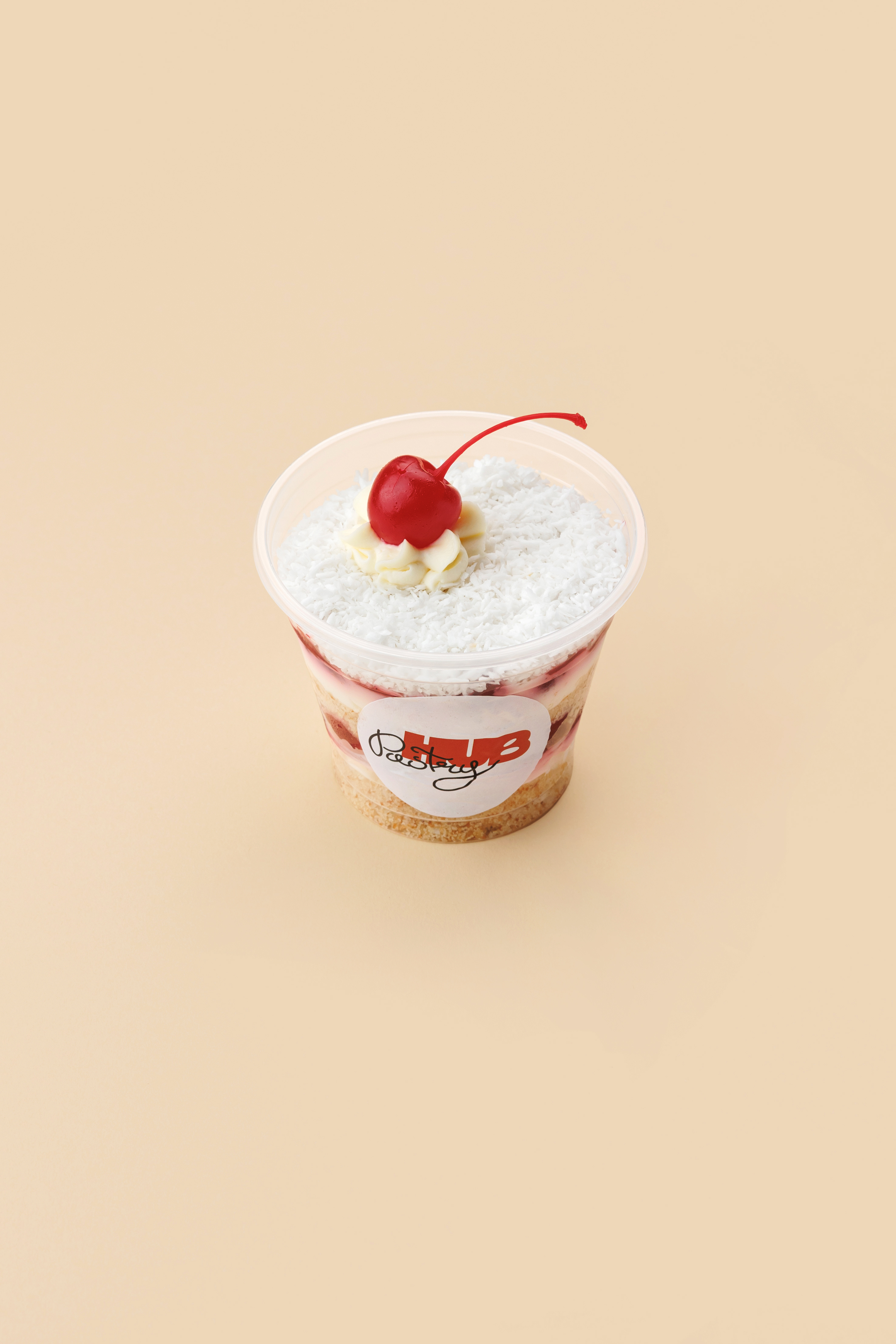 Ваш улюблений торт але у більш зручному форматі. Ванільний вологий бисквіт із кокосовою стружкою в поєднанні з сирково-вершковим кремом і соковита вишня, що додає кислинки.
